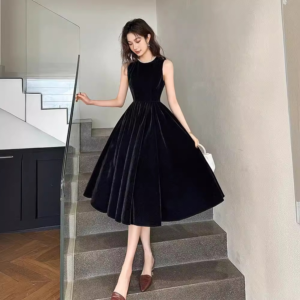 Gaun Hitam Kecil Hepburn Ramping Cantik Gaya Senior Gaun Hitam Tanpa Lengan Gaun High-end Model Baru 2025 Musim Panas Wanita