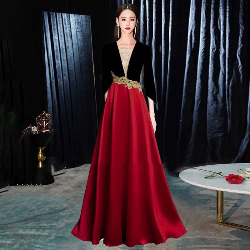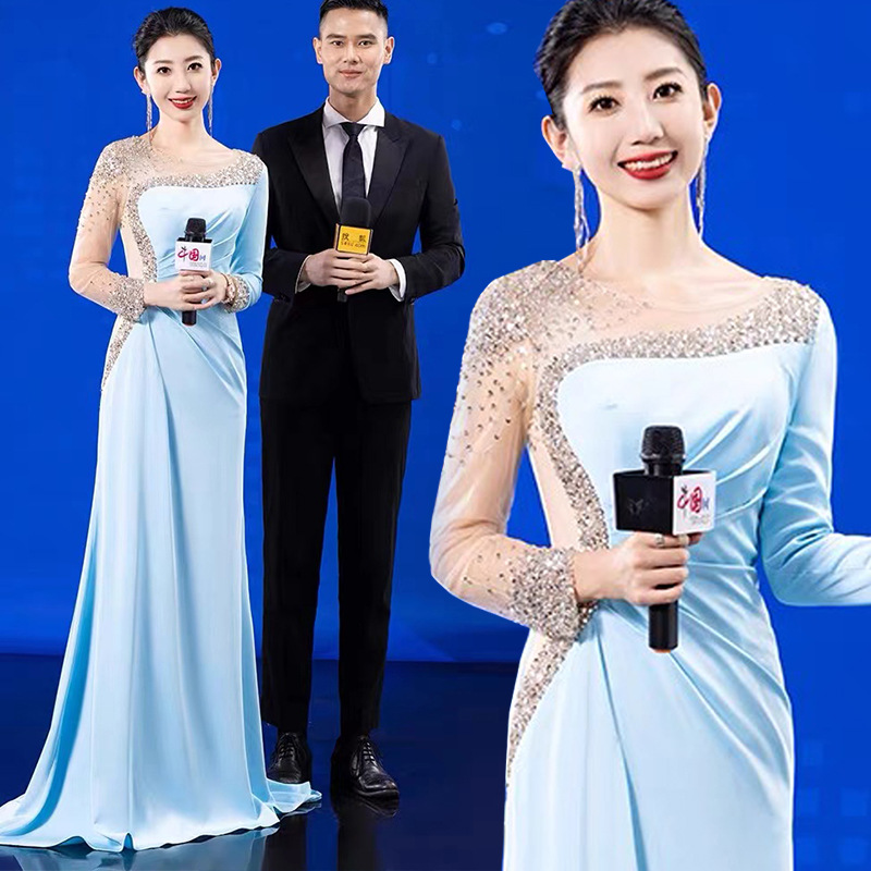 Gaun Pesta Pesta Gaun Wanita Gaun Model Panjang Tuan Rumah Model Baru 2025 Pakaian Pertunjukan Niche Elegan Ramping Terlihat Langsing