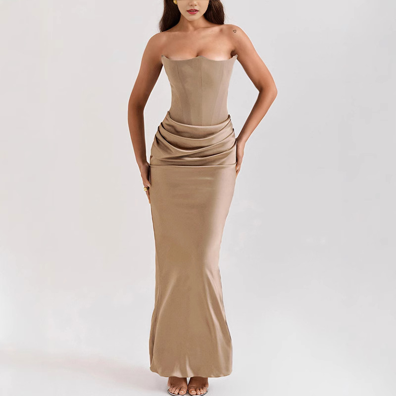 Gaun Satin Seksi Elegan Ramping Model Baru Eropa dan Amerika Model Baru Ready Spot 2025 Gaun Wanita