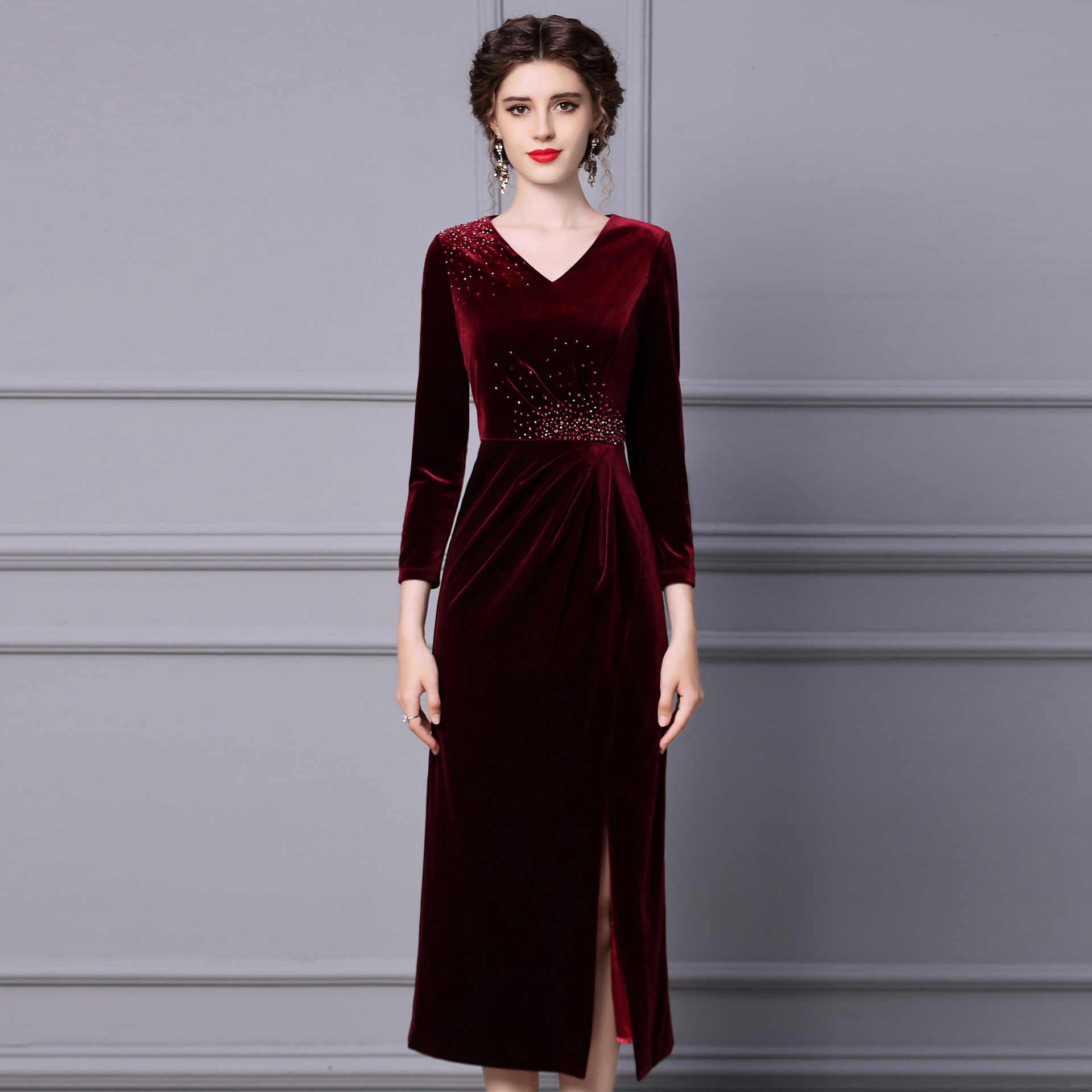 Gaun malam Sauna gaun panjang gaun vakum seksi deep V kelab malam pakaian kerja wanita pelangsing kelab malam pakaian wanita