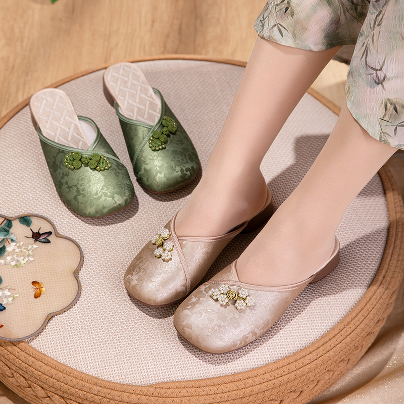栩屹拖2025春季新款复古气质方跟老北京布鞋国风旗袍鞋绣花鞋