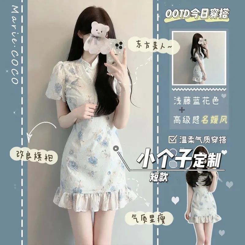 Rok bunga gaya nasional cheongsam peningkatan rasa desain ceruk gaun lembut Cina baru pinggang temperamen musim panas