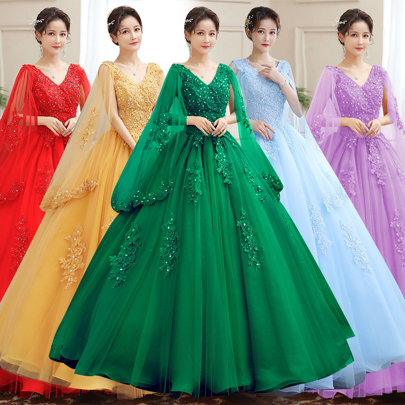 Gaun malam pertemuan tahunan benang warna-warni gaun ujian seni vokal siswa kinerja host gaun panjang pettiskirt