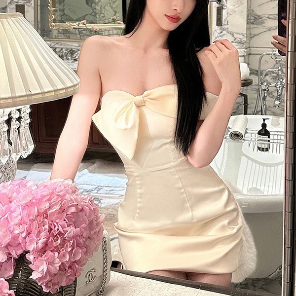 Gaun malam Tube top kelas tinggi untuk wanita, Gaun jamuan makan, Gaun lampu fotografi tema pernikahan elegan, Rok dalam elegan untuk wanita