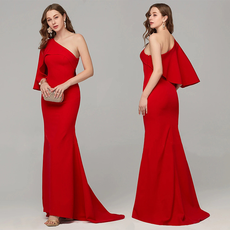 Gaun malam diskon besar-besaran bahu miring satu bahu musim gugur eropa dan amerika 2024