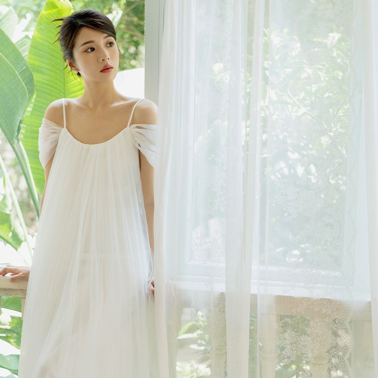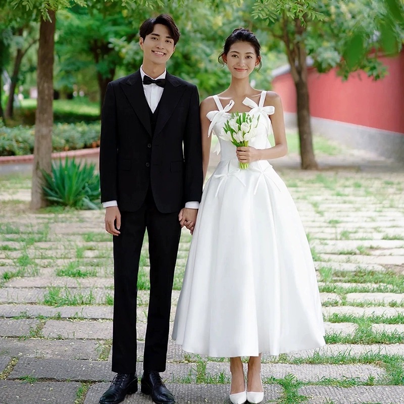 Gaun pengantin ringan, gaun pengantin tali bahu terbuka, gaun pagi elegan banquet, gaun jala selempang