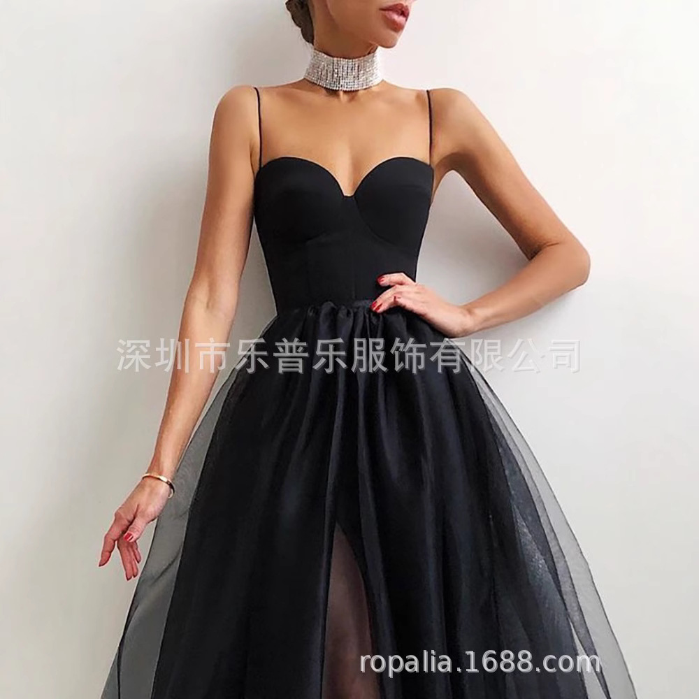 2025 Gaun Malam Lintas Batas Eropa dan Amerika Model Baru Gaun Sling Kasa Gaun Slim-fit Punggung Terbuka
