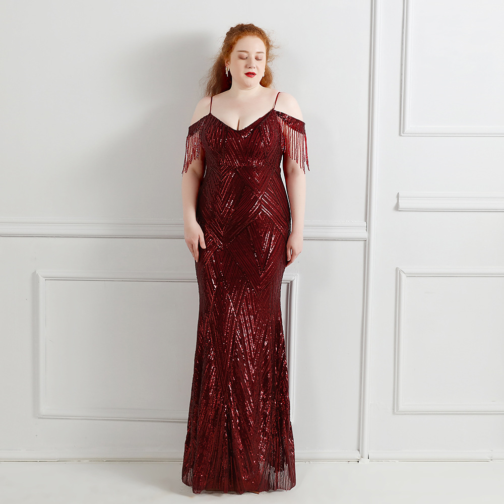 18581-S # Payet Panjang Ukuran Super Gemuk Ukuran XL Pakaian Pertunjukan Kecantikan Gemuk Gaun Pesta Pesta