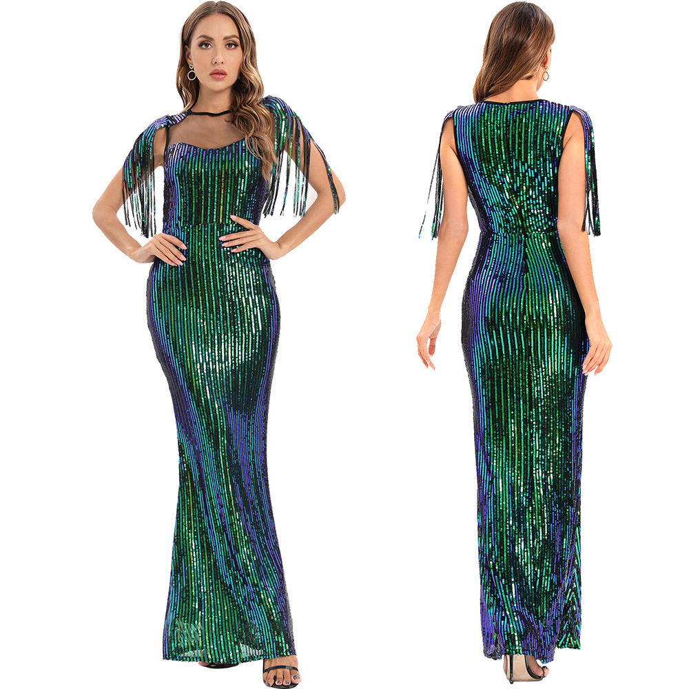 Gaun payet hijau perspektif seksi Gaun Wanita perdagangan luar negeri Eropa dan Amerika gaun malam Amazon AliExpress baru