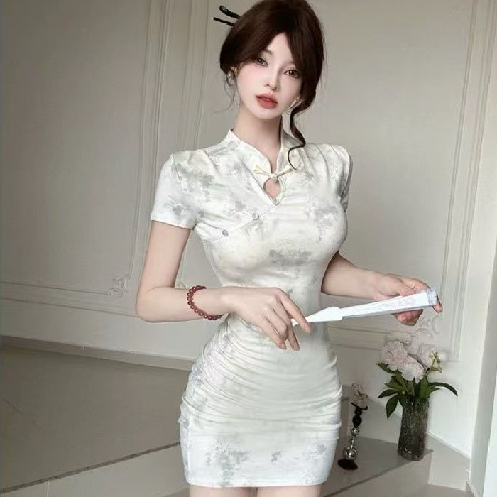 Cheongsam Modifikasi Gaya Tiongkok Baru Sangat Pedas Rok Pendek Sangat Pedas