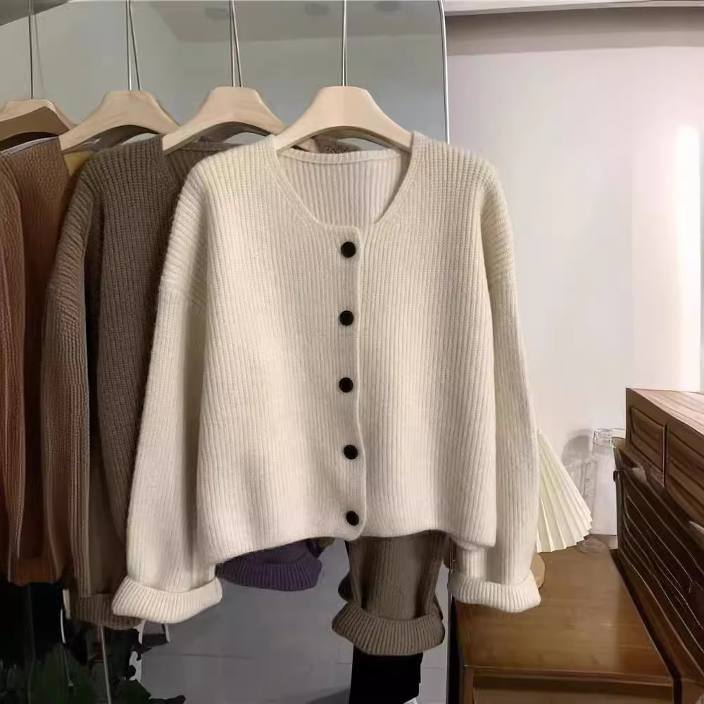 韩系圆领休闲毛衣女开衫春季新款宽松慵懒风长袖针织衫高级感上衣