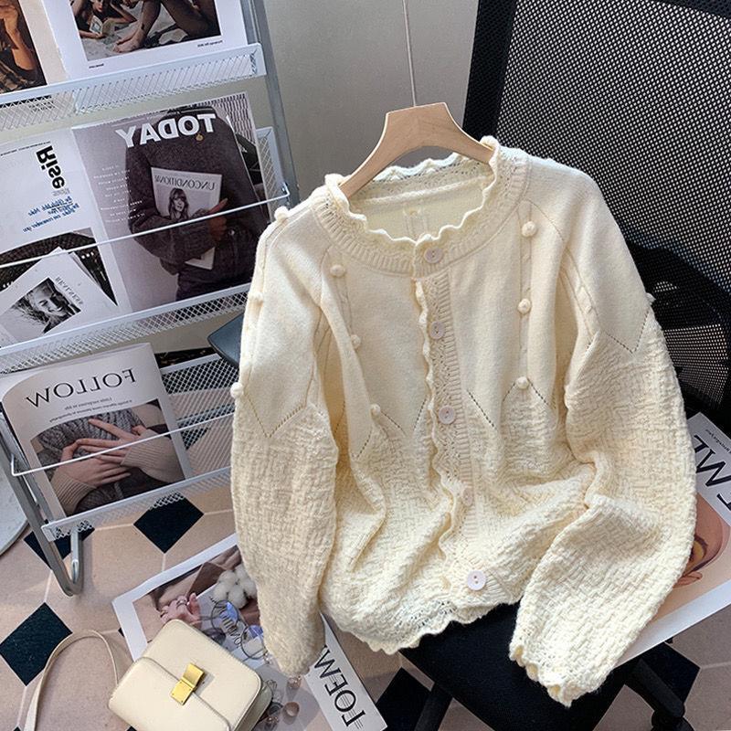 Atasan Kardigan Bola Lilin Lembut Wanita Sweater Rajutan Lengan Panjang Gaya Manis Gaya Baru Musim Semi dan Musim Gugur