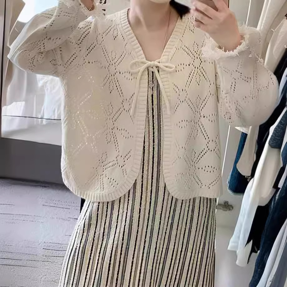 2024 awal musim semi baru longgar sweater berongga kardigan wanita renda lengan panjang sweater mantel desain atasan