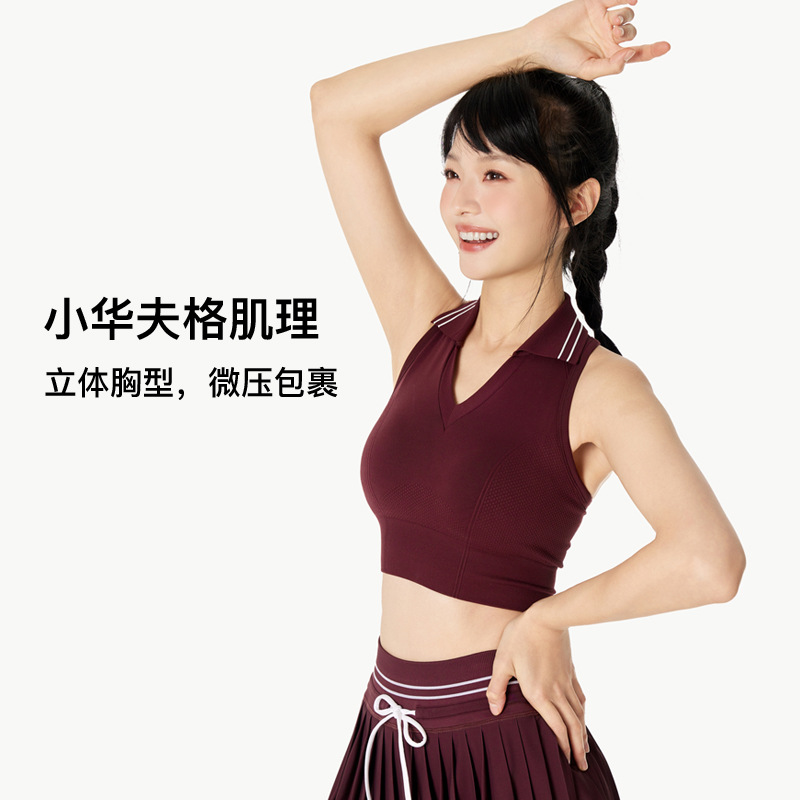 Pakaian Dalam Olahraga Pakaian Yoga Kerah POLO Elegan Wanita Tank Top Kekuatan Tinggi Anti Guncangan Luar Lari Kebugaran Bra Berkumpul