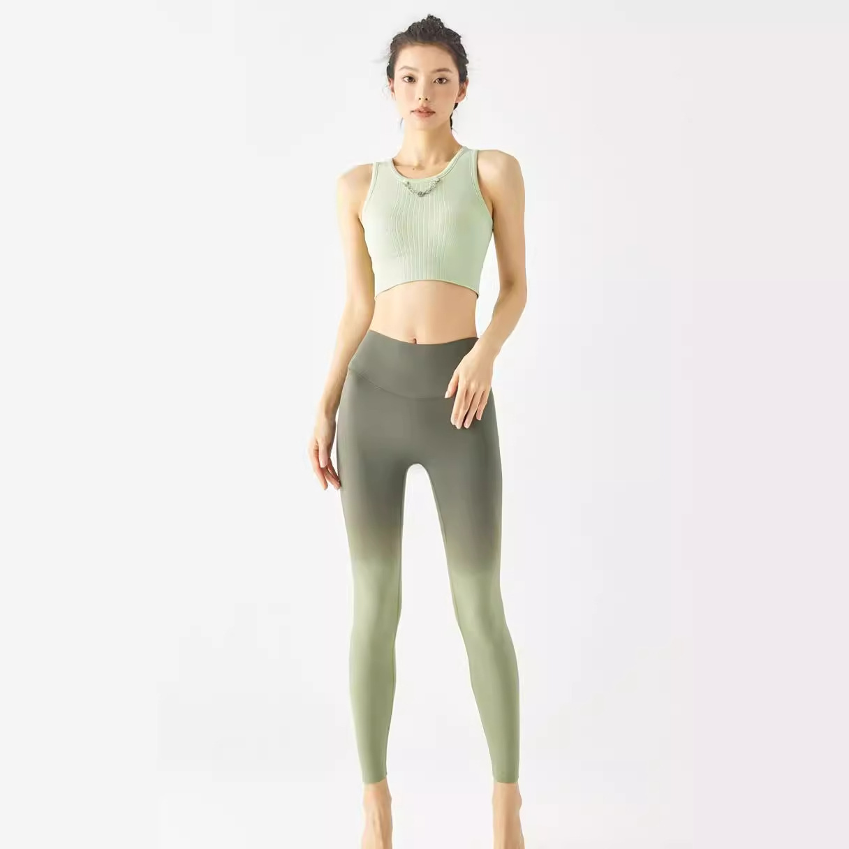 Celana yoga kebugaran telanjang tipis lembut ramah kulit disikat dua sisi ukuran Lycra pinggang tinggi