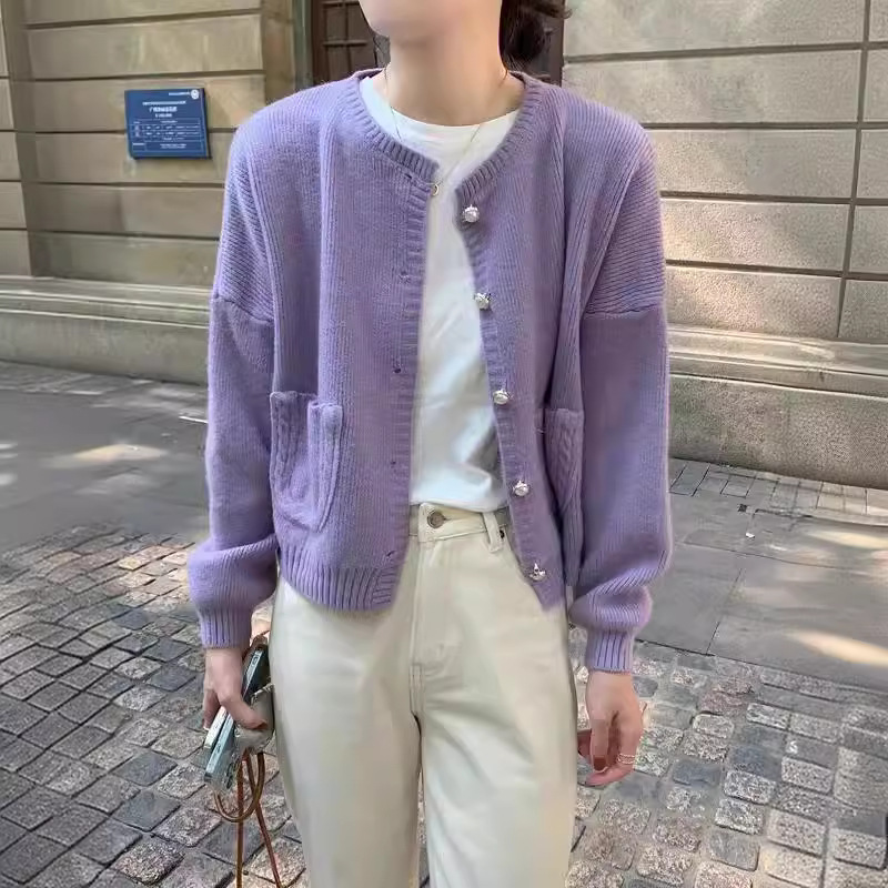 Atasan Kardigan Model Baru Musim Gugur Musim Dingin Gaya Santai Warna Polos Sweater Mudah Dipadu Padan Kantong Longgar Lembut Lembut Jaket Manis