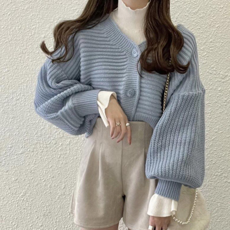 Kardigan Rajutan Beludru Rakun Imitasi Lilin Lembut Versi Korea Model Baru Musim Semi Musim Semi Sweater Modis Gaya Santai Adik Perempuan Seri Susu Musim Semi Musim Gugur