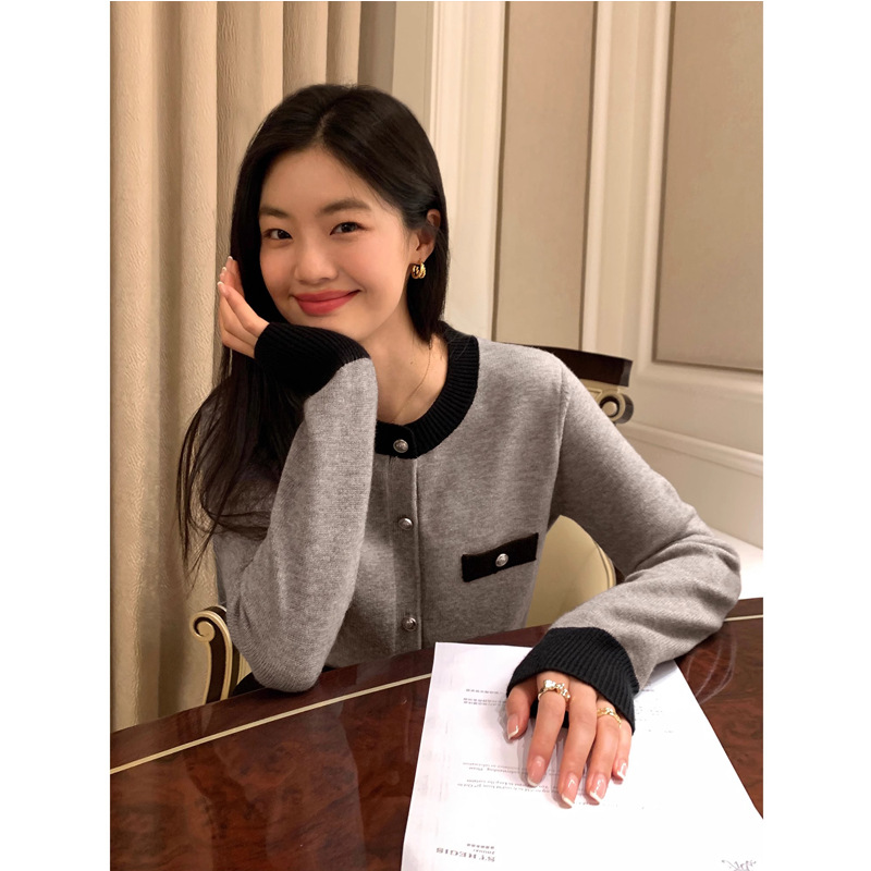 法式高级感小香风灰毛衣外套女秋冬新款洋气减龄针织开衫气质上衣
