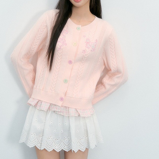 2025秋冬新款小个子甜美风格纹拼接针织开衫女毛衣别致超好看上衣