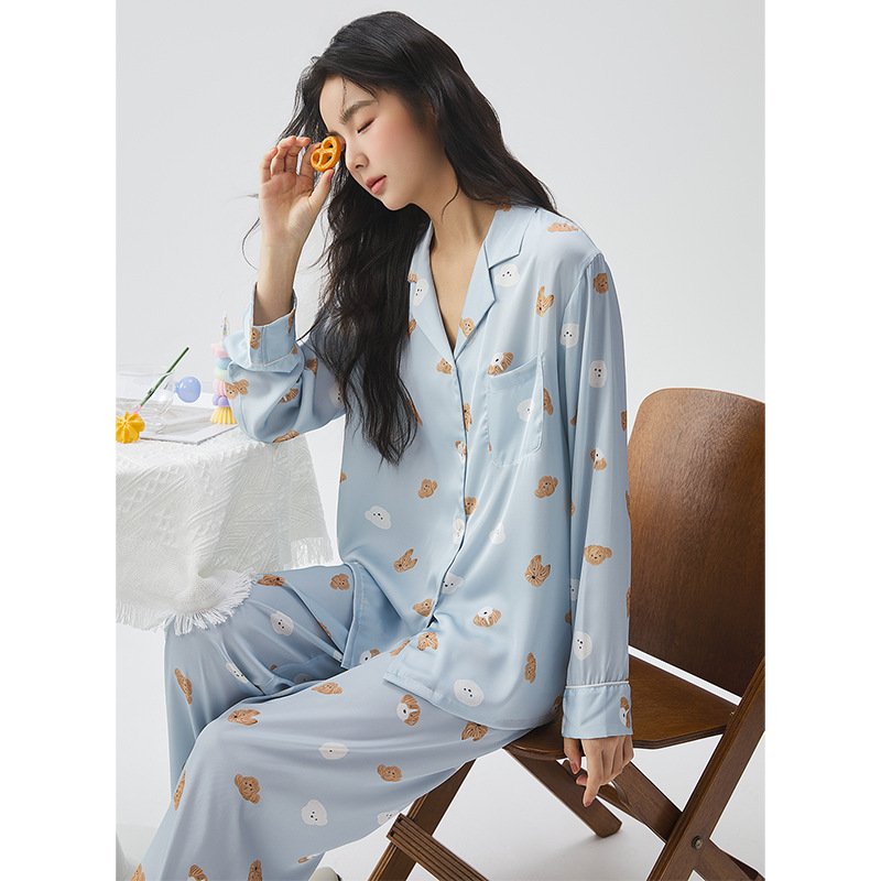 江南禾25年春新款冰丝睡衣女毛绒狗狗家居服女外穿夏季外贸跨境