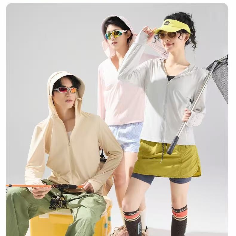 Pakaian pelindung matahari mulus ultra-tipis, pakaian sutra es hangat baru musim panas, jaket pasangan, pakaian bersepeda grup yang dapat dilepas, khusus LO