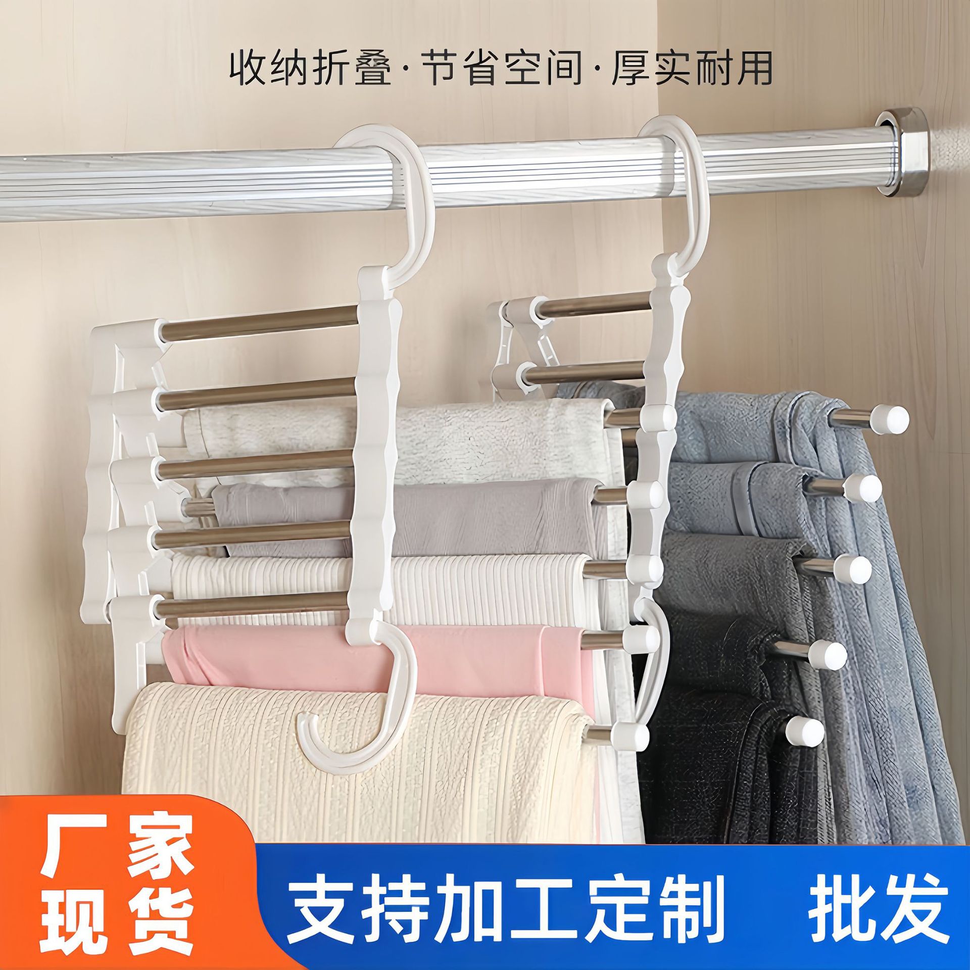 Rak celana rumah tangga, rak celana lipat dapat ditarik stainless steel multi fungsi gantungan