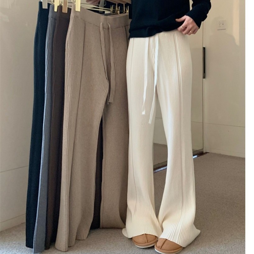 Celana Kasual Wanita Rajutan Terasa Tebal Versi Korea Celana Mikro-kecil Longgar Mudah Dipadu Padan Modis Gaya Malas Model Baru 2024 Musim Dingin
