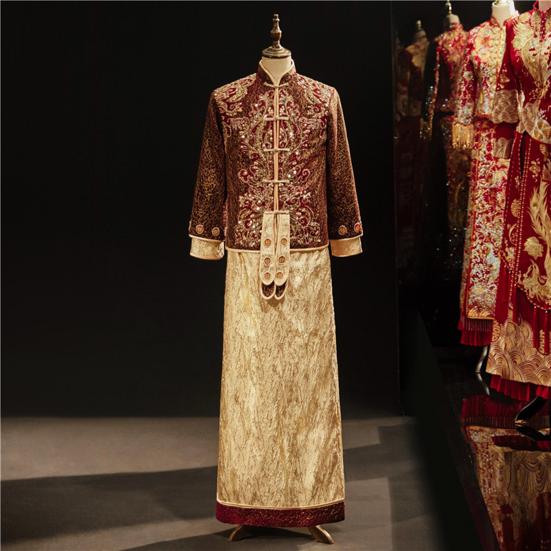 Setelan Xiuhe Pria, Pakaian Pengantin Pria Gaya Cina untuk Pesta, Model Terbaru Musim Semi/Panas 2025, Pakaian Pernikahan Tradisional Pria Xiuhe.