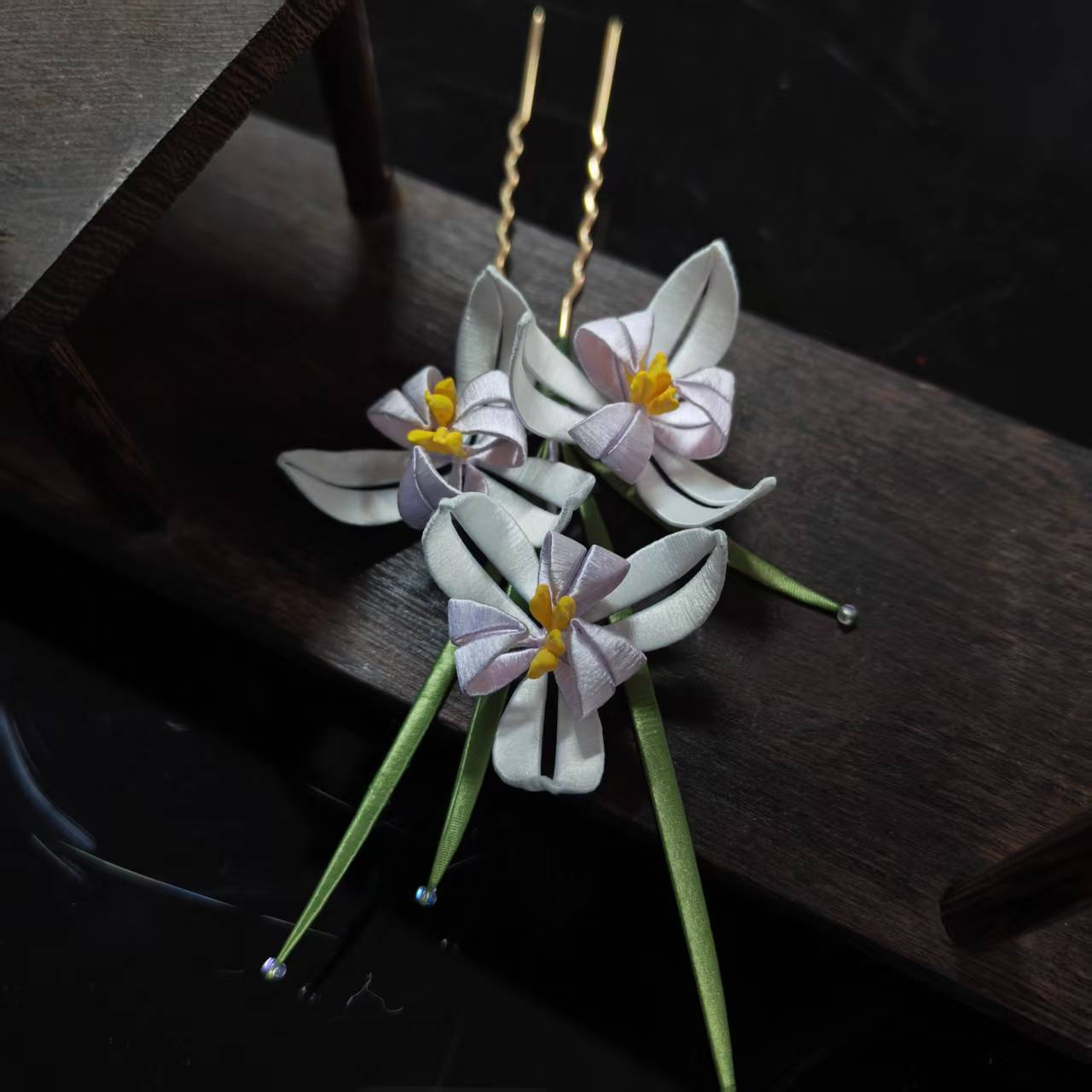 Jepit rambut bunga, tiga bunga anggrek u jepit rambut gaya kuno aksesoris rambut elemen Han Hanfu