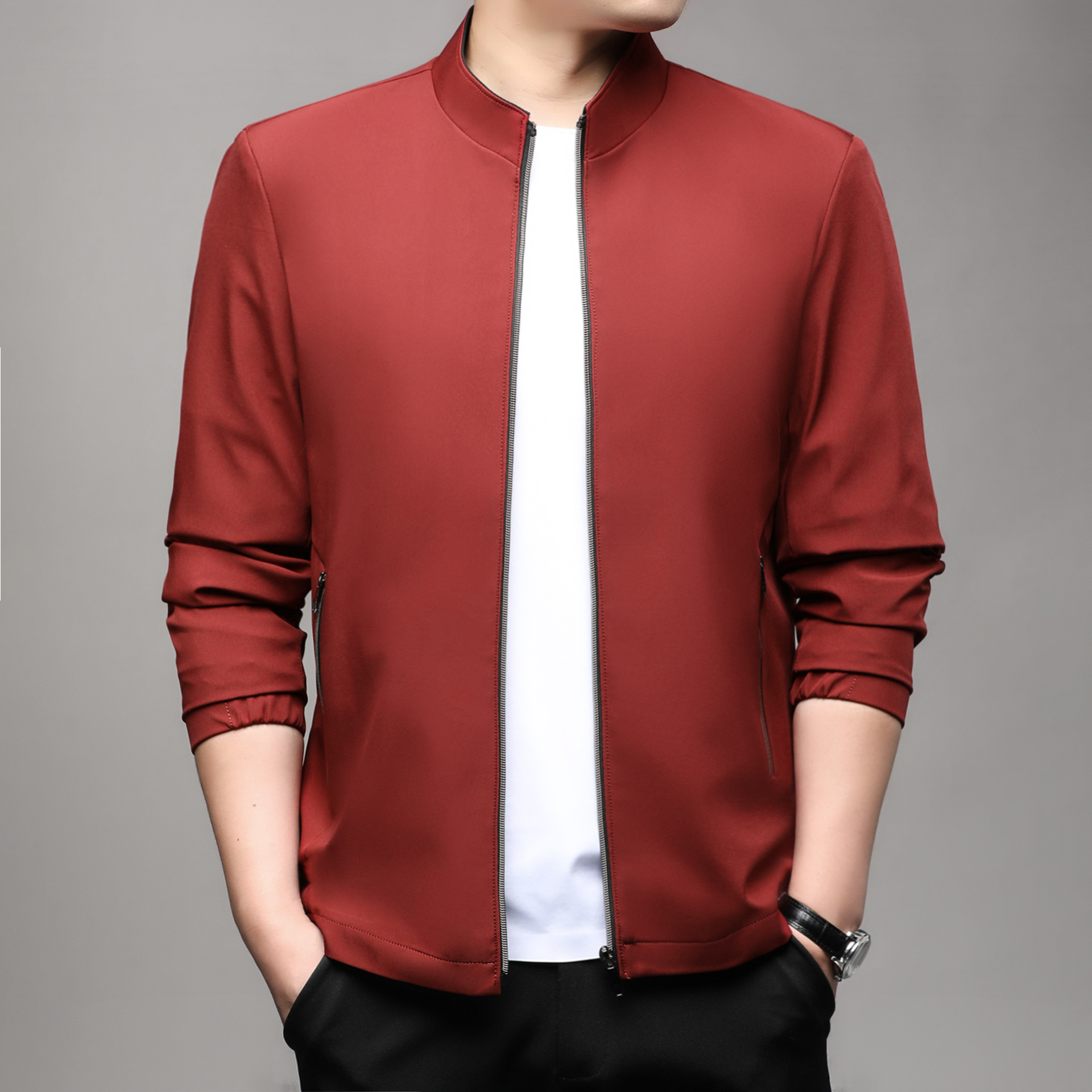 Jaket kerah berdiri pria, jaket bisnis sederhana kasual muda dan setengah baya 2023