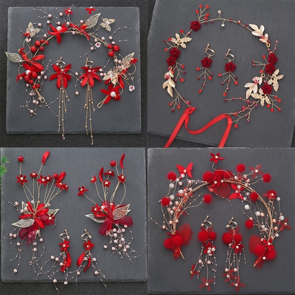 新娘头饰超仙红色敬酒服发箍结婚套装森女系发饰中式礼服配饰品