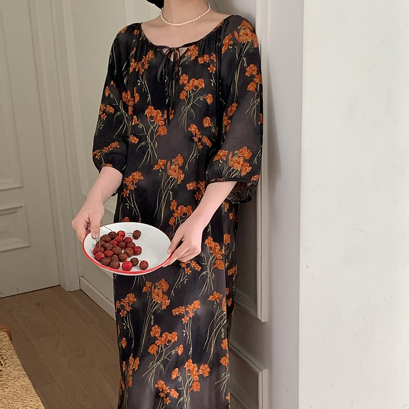 Rok Tidur Katun Sutra Model Panjang Musim Panas Wanita Pakaian Rumah Tangga Longgar Ukuran Besar Rok Bernapas Rok Pantai Katun Buatan Katun Model Tipis