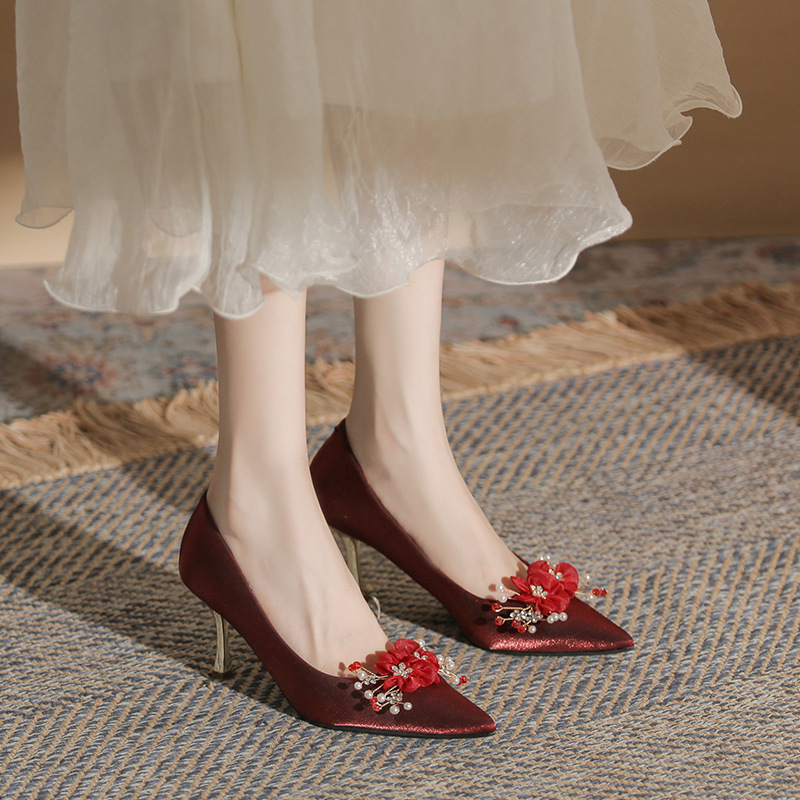 Sepatu Wanita Musim Semi dan Musim Panas Model Baru 2025 Sepatu Pernikahan Gaya Tiongkok Sepatu Hak Tinggi Sepatu Hak Tinggi Wanita Hak Tipis