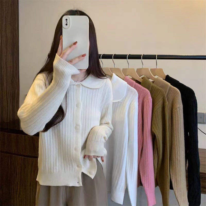 Kardigan Rajutan Kerah Boneka Gaya Lembut Jaket Sweater Kerah Lilin Lembut Niche Gaya Desain Gaya Malas Musim Gugur Musim Dingin Wanita