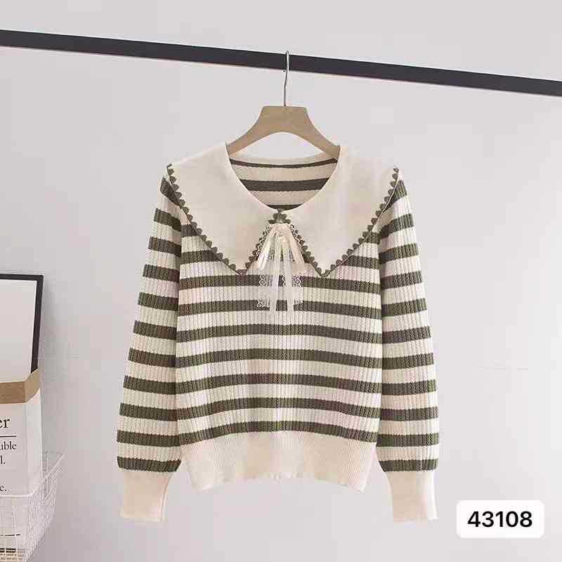 Pakaian Wanita Manis Kardigan Rajutan Garis-Garis Chic Gaya Korea Atasan Lengan Panjang Terlihat Ramping Menutupi Daging Gaya Barat Musim Gugur Gadis Hot Trendi