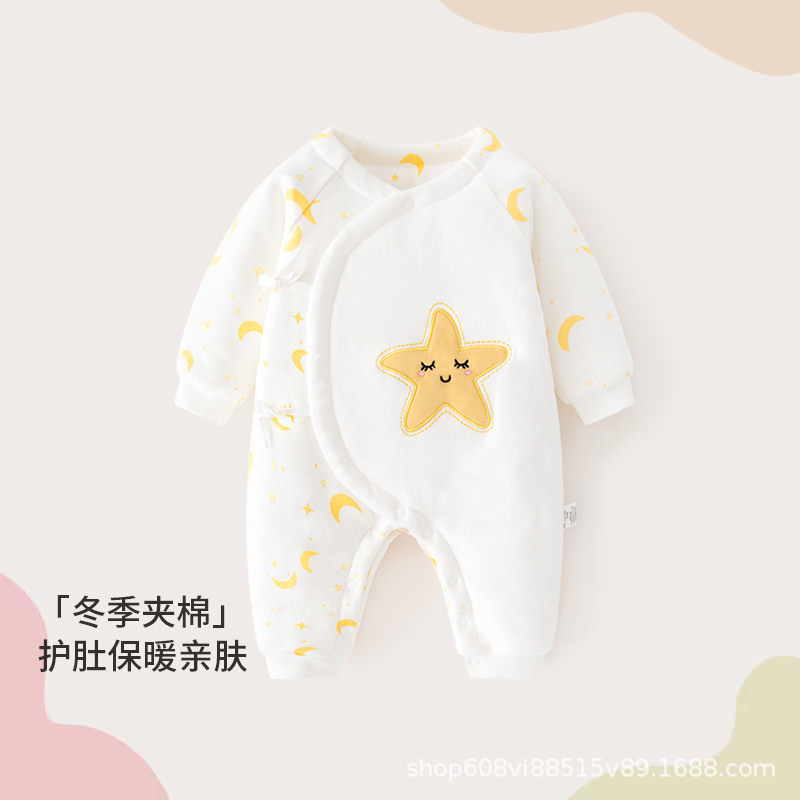 Jumpsuit katun bayi musim gugur dan musim dingin baju katun bayi baru lahir 120g baju hangat tanpa tulang