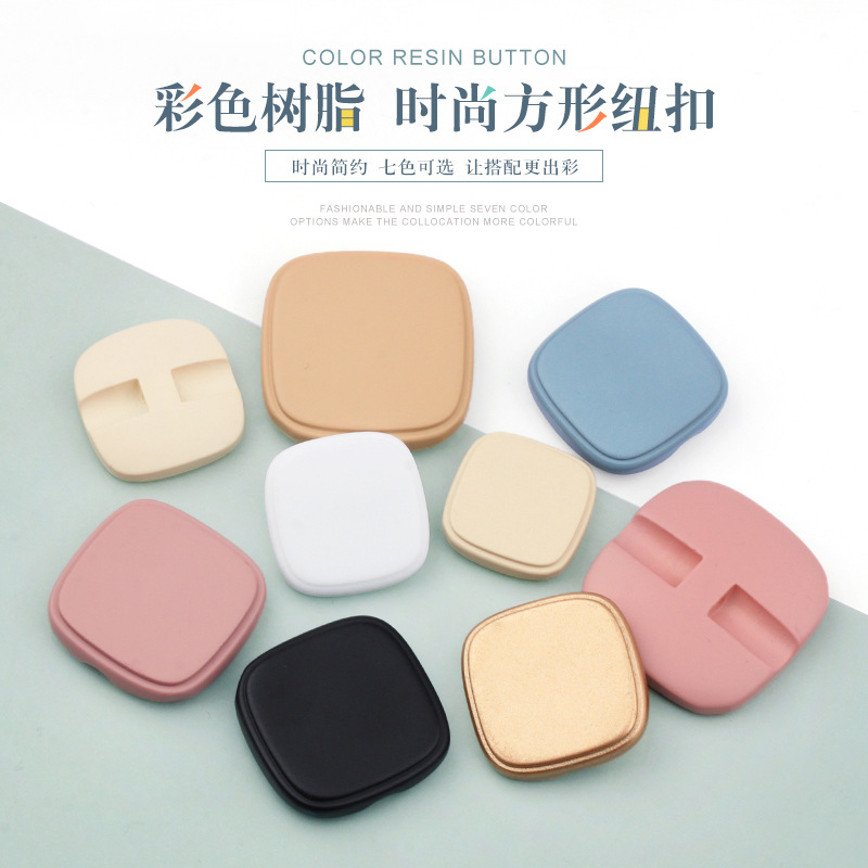 Tersedia warna dua mata kancing resin sweater rajutan dekoratif gesper mantel setelan kancing depan kancing persegi gesper