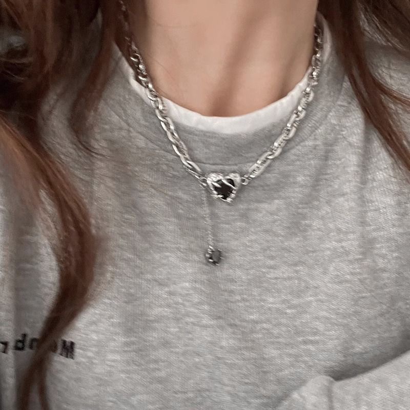 Lava Love Kalung sweter baja titanium zirkon wanita, rantai klavikula leher tinggi desain modis