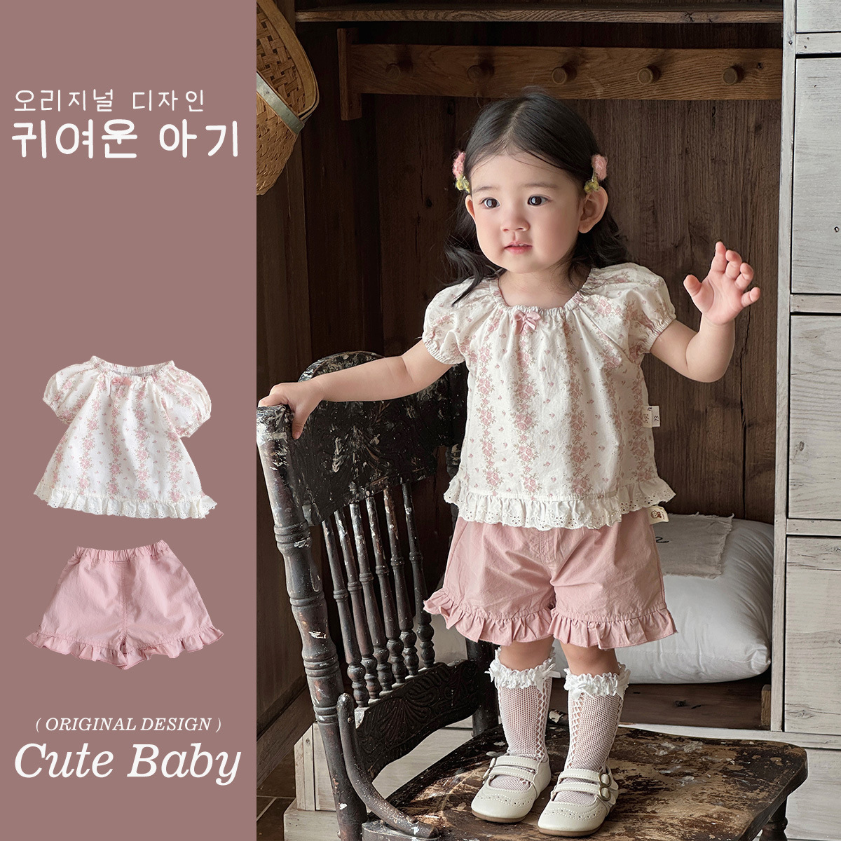 Set Celana Pendek Pullover Bunga Lengan Pendek Manis Anak Perempuan Model Tipis Baru Musim Panas 2025 Set Dua Potong Gaya Barat Bayi Perempuan