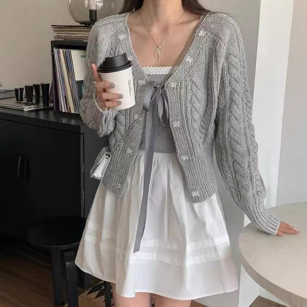 Jaket Awal Musim Gugur Gaya Korea Kardigan Rajutan Retro Gaya Prancis Gaya Chanel Kelas Atas Gaya Korea Desain Niche Gaya Murid Perempuan