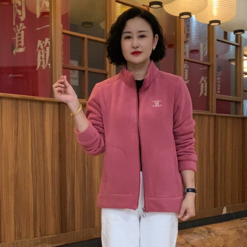 Pakaian Ibu kelas atas 2023, jaket atasan bulu domba dua sisi warna solid musim gugur dan musim dingin wanita hangat baru berlapis katun longgar