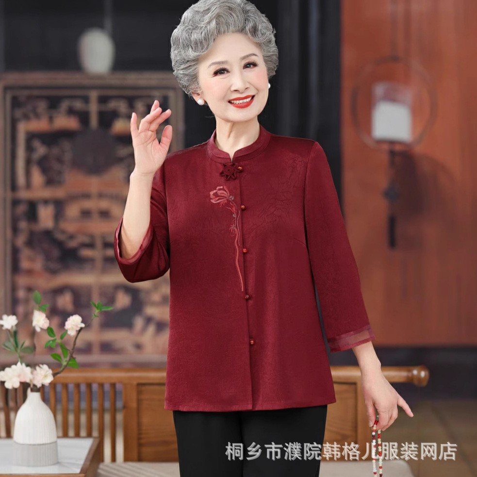 Kemeja Wanita Pakaian Musim Semi Lansia Baju Atasan Lengan 3/4 Nenek Pakaian Musim Panas Ibu Mulia Gaya Barat Pakaian Orang Tua