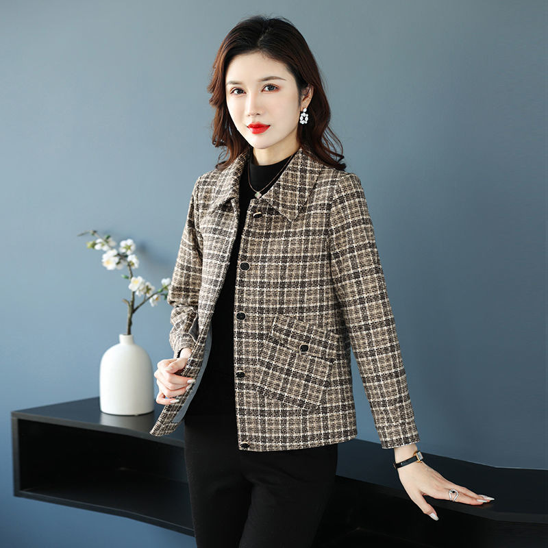 Mantel gaya chenel untuk wanita, atasan pendek gaya Korea musim semi dan musim gugur, pakaian wanita paruh baya dan lansia 2023