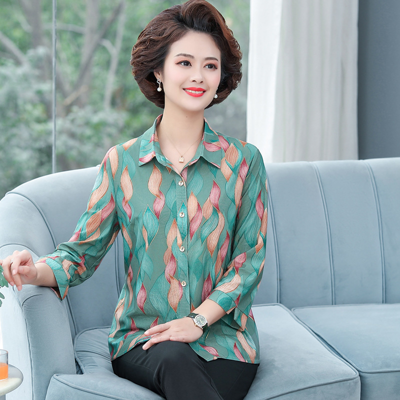Kemeja Wanita Pakaian Musim Semi Lansia Baju Atasan Lengan 3/4 Nenek Pakaian Musim Panas Ibu Mulia Gaya Barat Pakaian Orang Tua