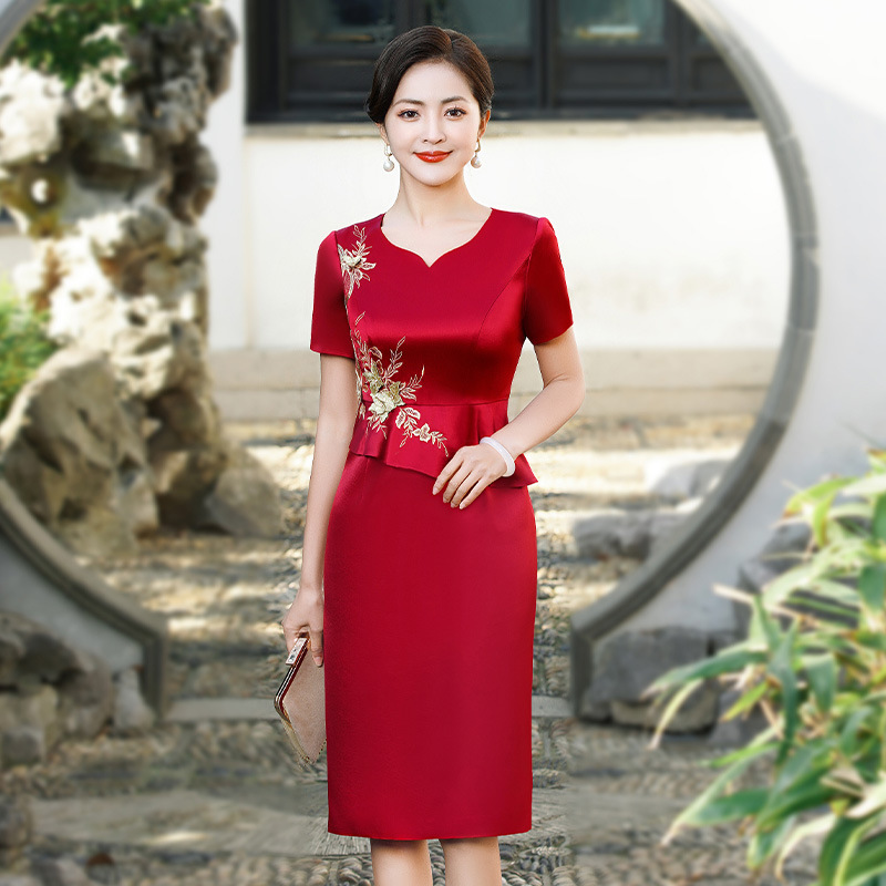 Gaun Pesta Pernikahan Mama Pernikahan Pria Kecil Rok Musim Panas Model Baru Gaun Pesta Ibu mertua Dua Potong Palsu Pakaian Bersulang Menutupi Perut
