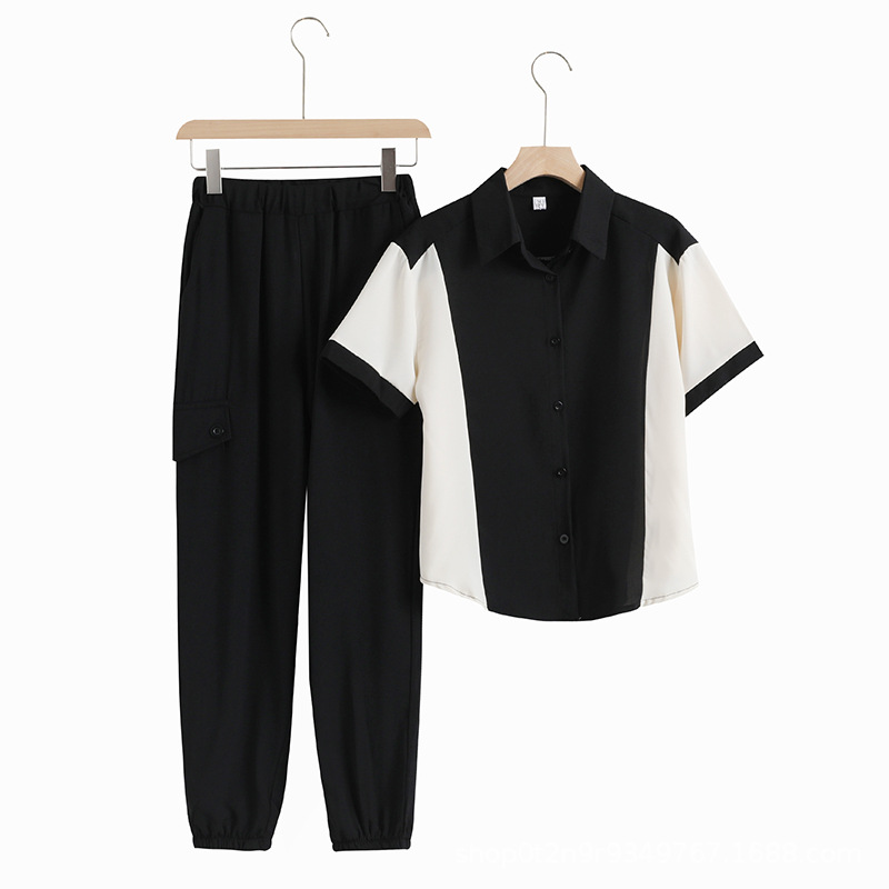 Setelan pakaian olahraga kasual untuk wanita, pakaian musim panas wanita paruh baya dan lansia, setelan ukuran besar gaya Barat, pakaian musim panas lengan pendek