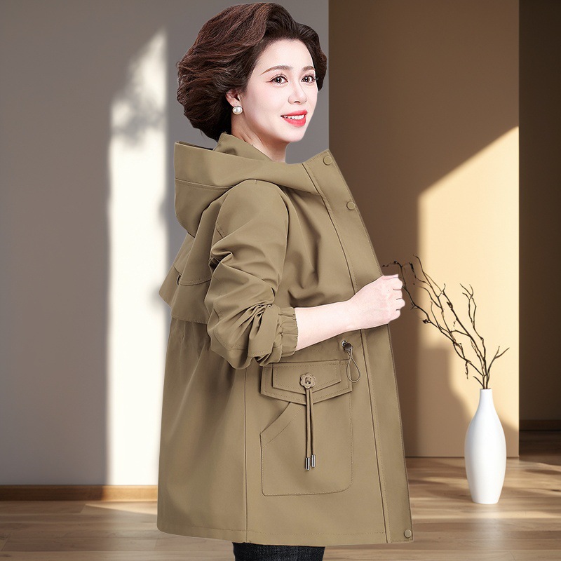 Mantel Ibu gaya Barat musim semi dan musim gugur, ukuran besar wanita usia sedang 2023 baru 50 tahun mantel trench musim gugur setengah panjang
