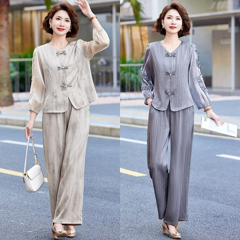 Pakaian Ibu kaus gaya China baru, baju kecil gaya Barat baru usia sedang dan Lansia dua potong Musim Panas 2024
