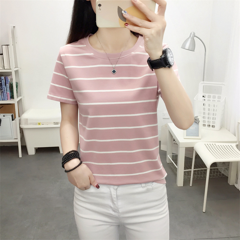 Kaus katun bergaris wanita lengan pendek, pakaian Atasan Wanita longgar ukuran plus, Kaus musim panas 2023 untuk perempuan gemuk baru