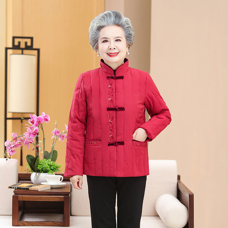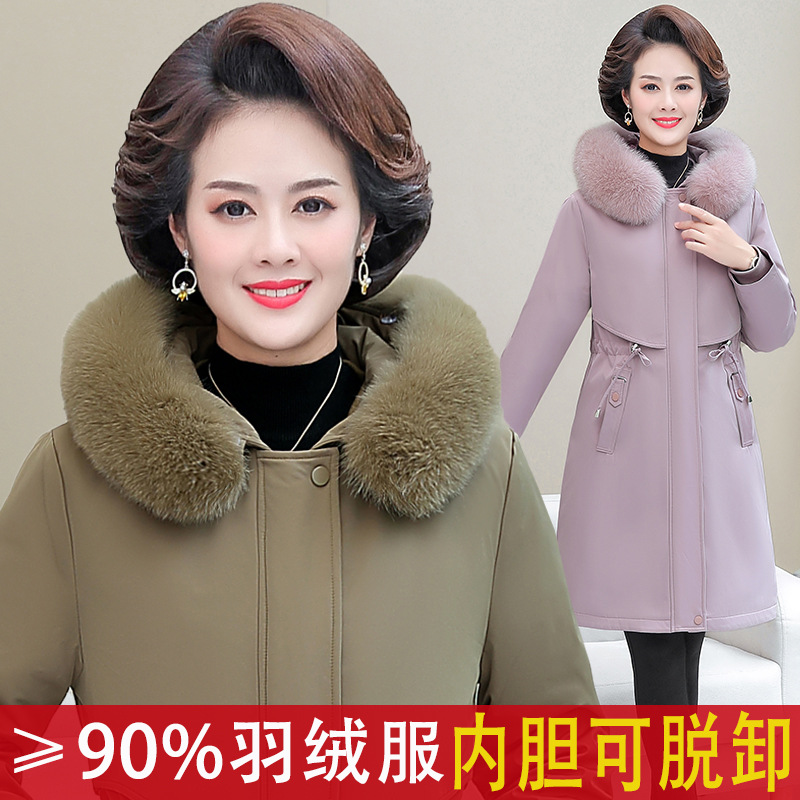 Sirui jaket bulu angsa ibu populer 90 beludru kerah bulu bordir temperamen paruh baya dan orang tua 2022